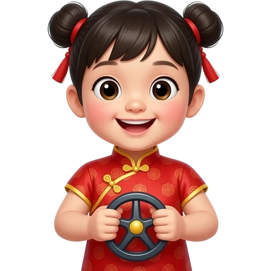 chinese dress cute asian kid playing with car wheel emoji