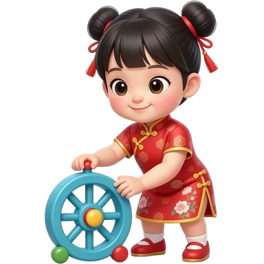 chinese dress cute asian kid playing with wheel emoji