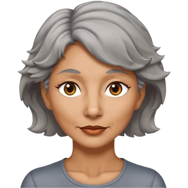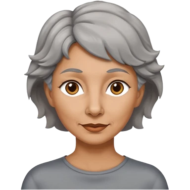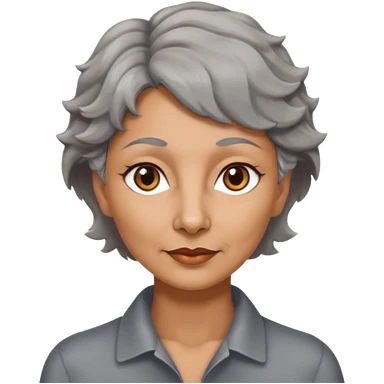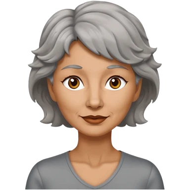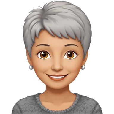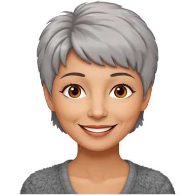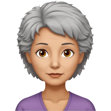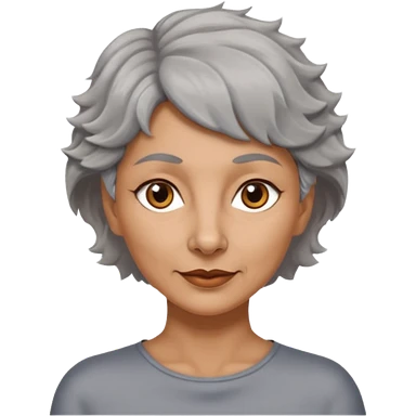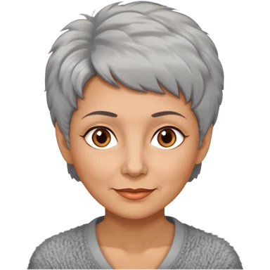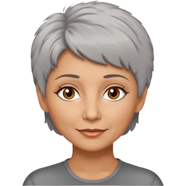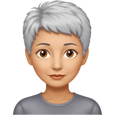 woman 50 years old, very short grey fluffy hair, tannes skin and brown eyes emoji