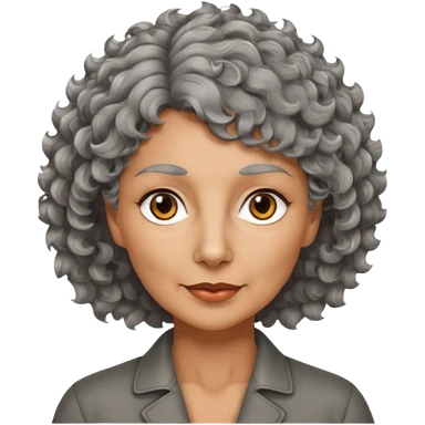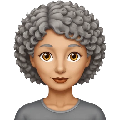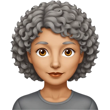 woman 50 years old, tanned skin, short grey curly-wavy wolf cut hair, brown eyes emoji