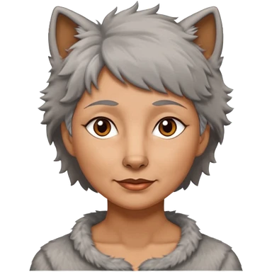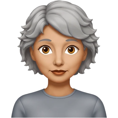 woman 50 years old, tanned skin, short grey wavy wolf cut hair, brown eyes emoji