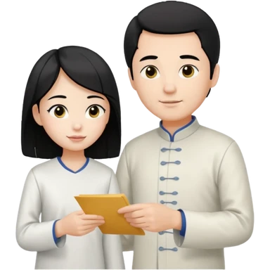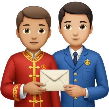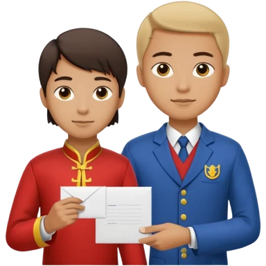 a university student handing letter to a official with chinese tunic suit emoji