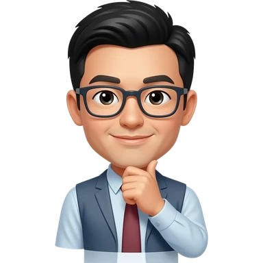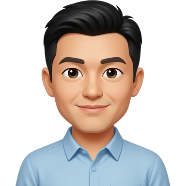 memoji of a young man with a laptop in the left front, apple-style, on the laptop there is a blue sticker with 4 letters: "WYZE". modern, dark hair, dark blue suit, laptop in hand, laptop on the table, chinese skin, sitting on this desk. emoji