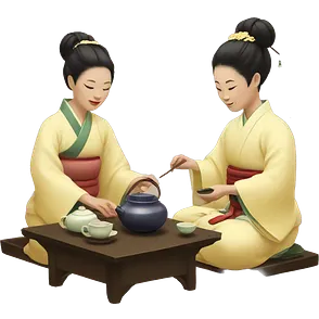 Chinese tea set with small teapot and cups for Kung Fu tea ceremony, emoji style emoji | AI Emoji Generator