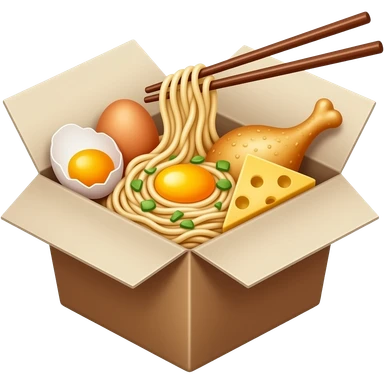 Chinese Noodles in a box with eggs and chicken and cheese emoji