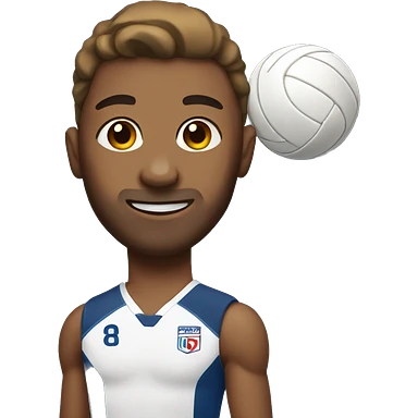 A volleyball resting on the orange sand grownd of a beach, with a volleyball net in the background. The scene captures a sunny beach atmosphere with clear blue sea and sky, palm trees swaying, and people in swimsuits enjoying the vibrant surroundings emoji