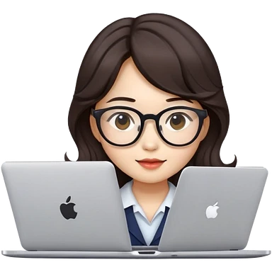 can u make emoji like apple style of chinese girl with korean wavy hair dark brown with glasses that doing a work in her laptop emoji