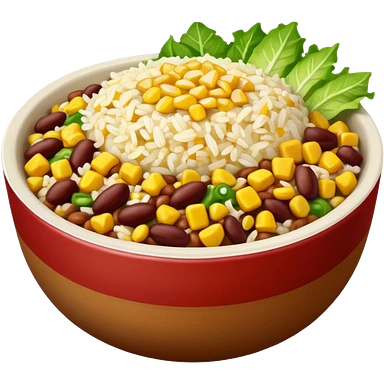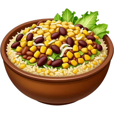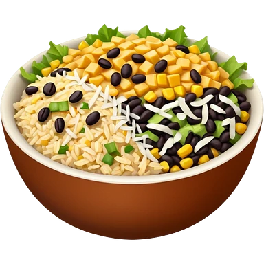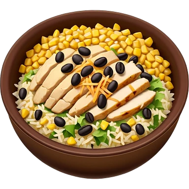 Chipotle bowl,white rice,chicken,steak,pinto beans,cheese,lettuce emoji
