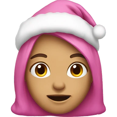 Girl brown hair pink chrismas hat emoji
