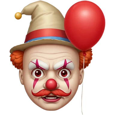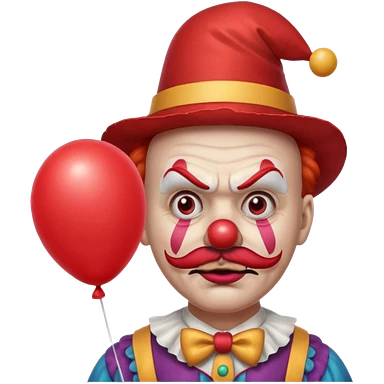Angry clown — furrowed brow, mustache, tiny hat, hold balloon emoji