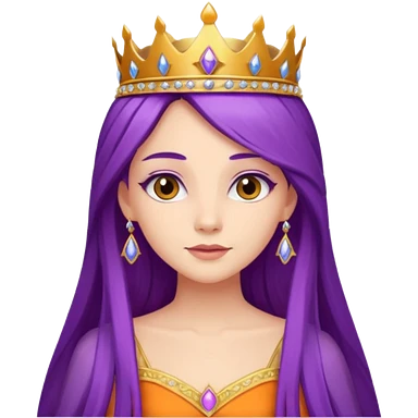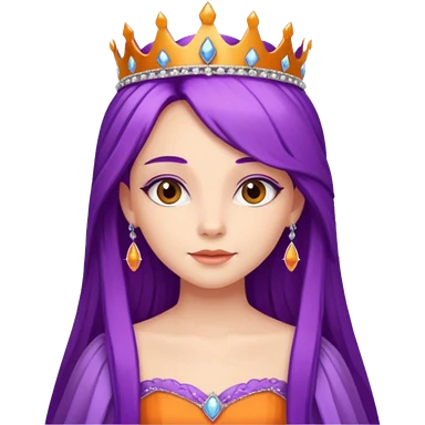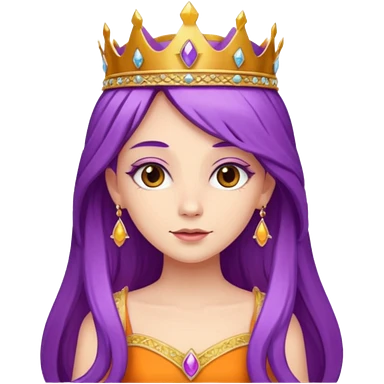 Princesses with long Purple Hair in Gown with gold Tiara, orange dress emoji