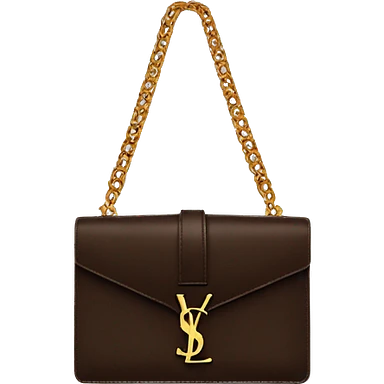 Chocolate Brown tote bag of suede leather with golden YSL sign emoji | AI Emoji Generator
