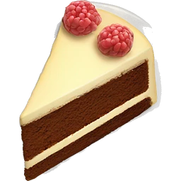 Chocolate Cake Slice with strawberry frosting on the top left of the cake slice and vanilla frosting on the top right of the cake slice and a face emoji | AI Emoji Generator