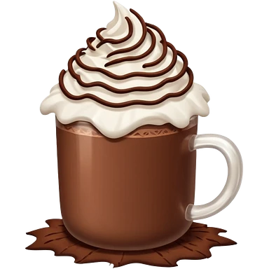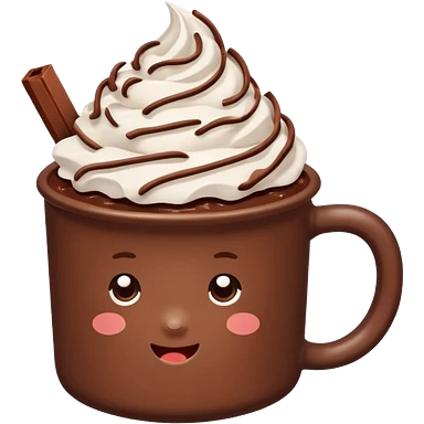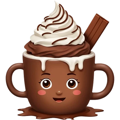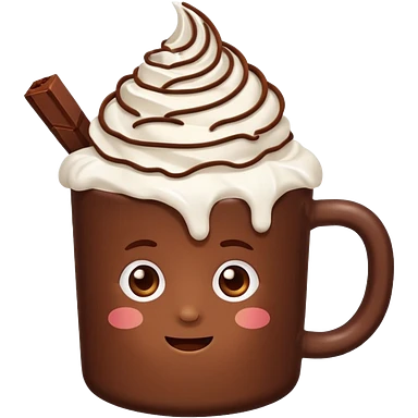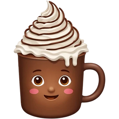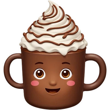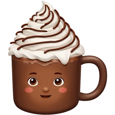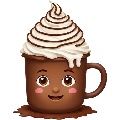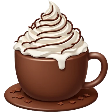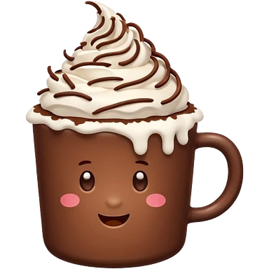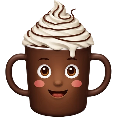 “hot chocolate emoji, whipped cream on top, chocolate shavings, cute, minimal, white background” emoji