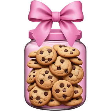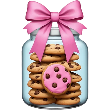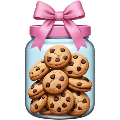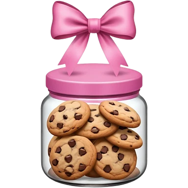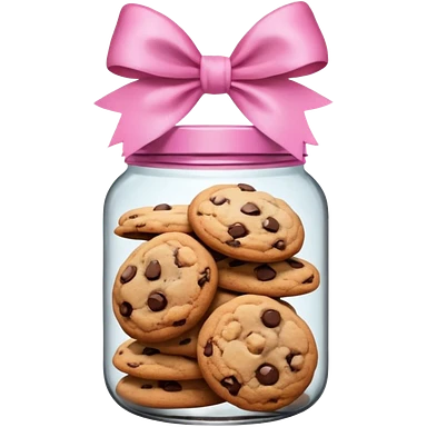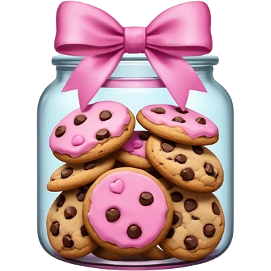 Pink jar of chocolate chip cookies with a bow in middle emoji