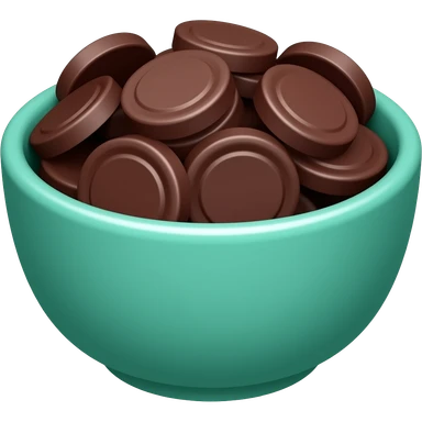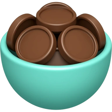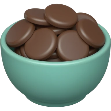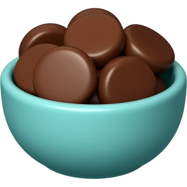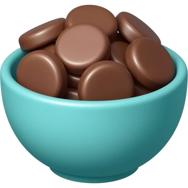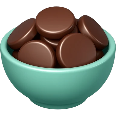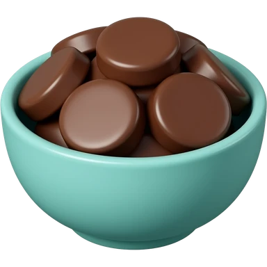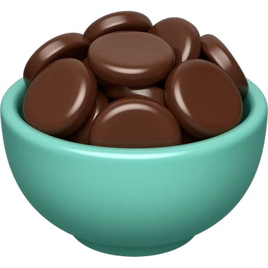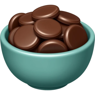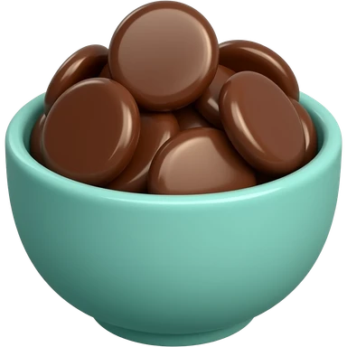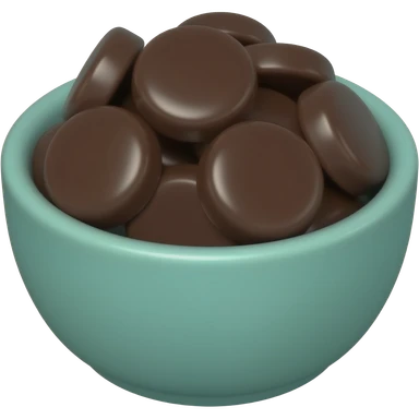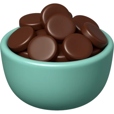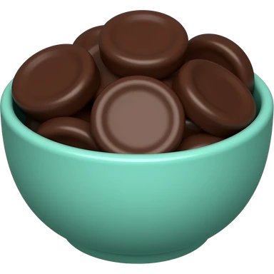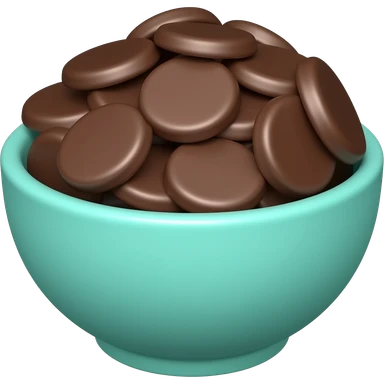 A brown bag of chocolate with the word "callebaut" written on it. Three chocolate circles are lying in the foreground. emoji