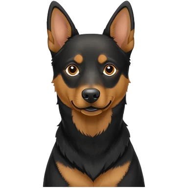 cinematic-[kelpie]-realistic-full-body-sitting-emoji,-tail-resting-loosely-beside-its-paws,-head-tilted-dramatically, -sleek-[Black and tan]-fur,-simplified-yet-realistic-focused-features,-highly-detailed,-glowing-with-an-almost-sarcastic-glow emoji