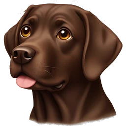Donald trump next to a chocolate lab dog with a white stripe on chest and yellow eyes emoji