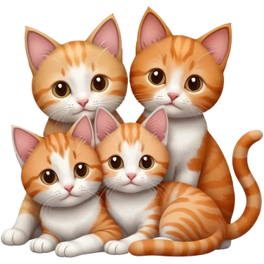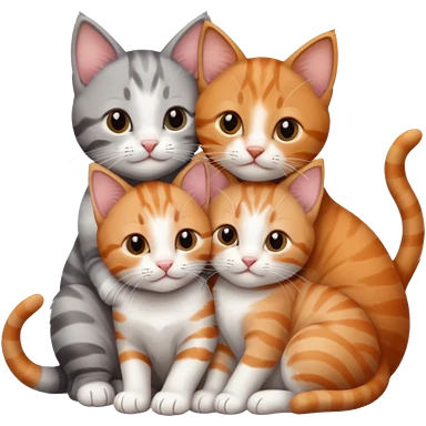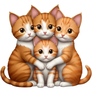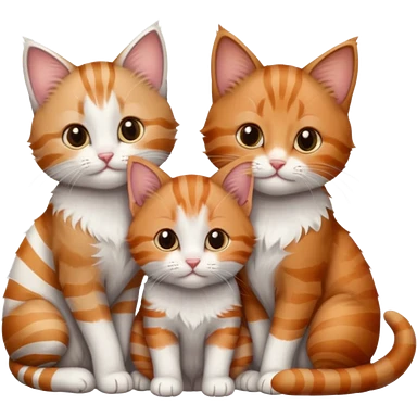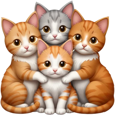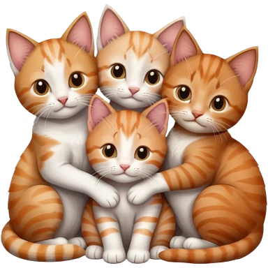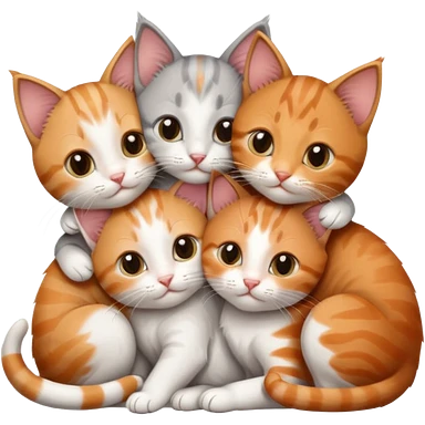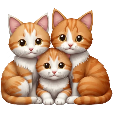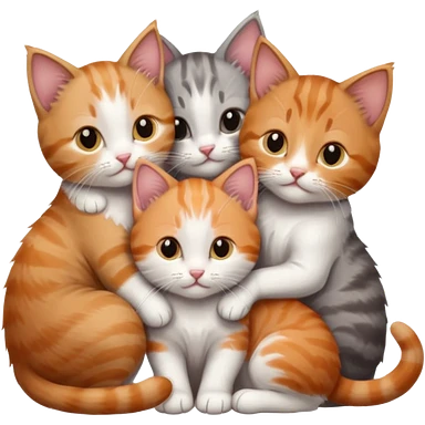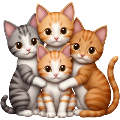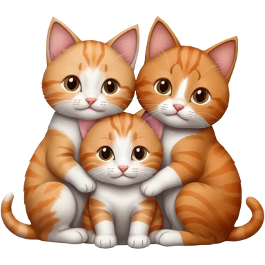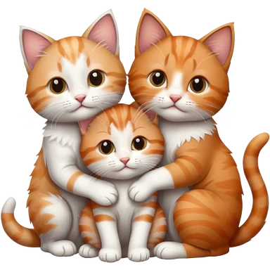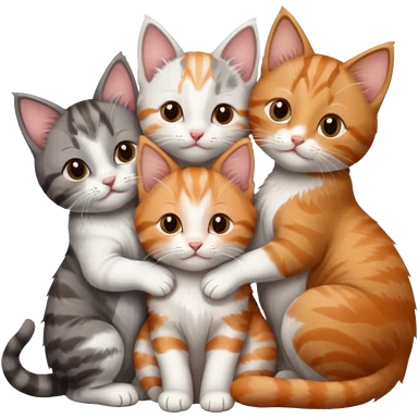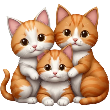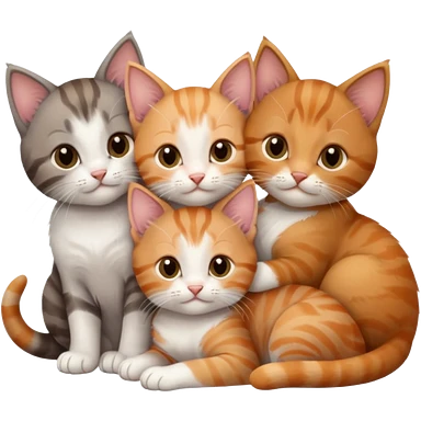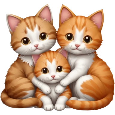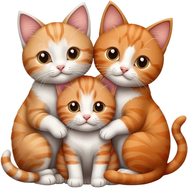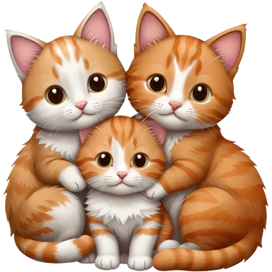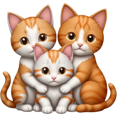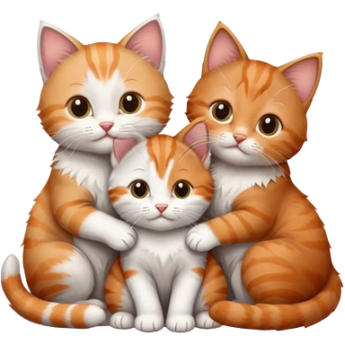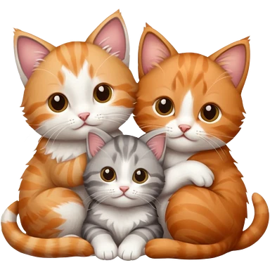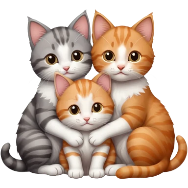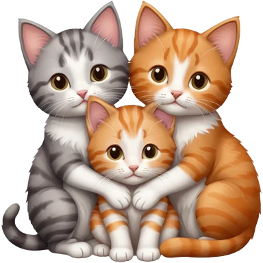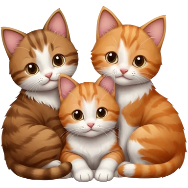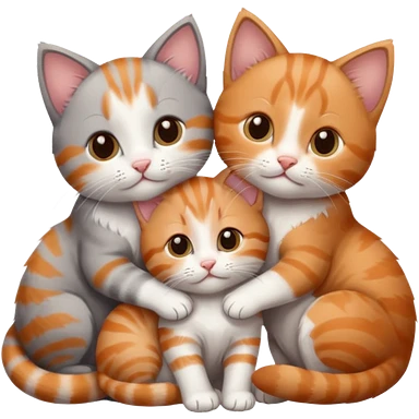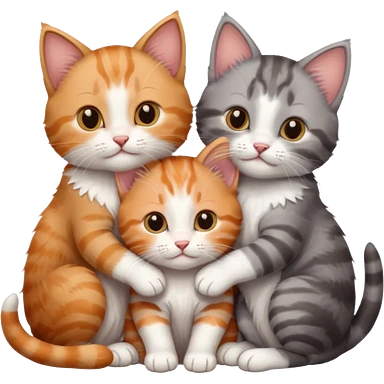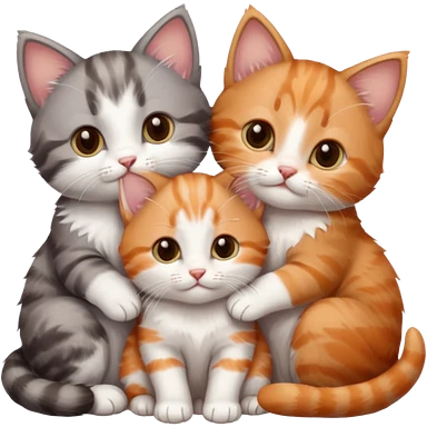 3 kittens cuddling together all different colours, the first one is grey and white, the second is ginger and white and the third is brown tabby and white emoji