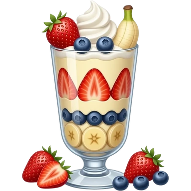 realistic -- pudding a la mode with fruit, custard and cream in elongated glass parfait dish emoji