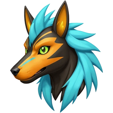 Cyan manectric-Electrike-Houndoom-fusion with neon-green stripes and orange eyes emoji