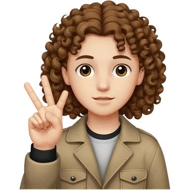 Pale young teenager with curly brown hair giving middle finger emoji