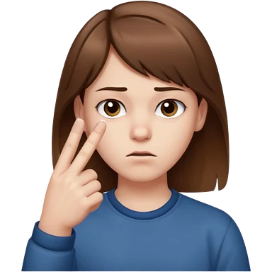 Pale young teenager with brown hair giving middle finger emoji