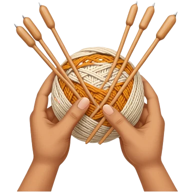 hands holding knitting needles with a ball of knitting thread (without a person's face) emoji
