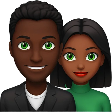 two evil persons (male and female) with devilish smile and black face and green eyes emoji