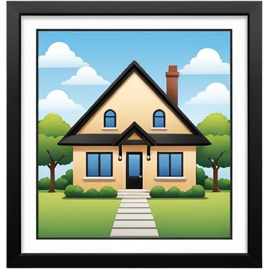 skeuomorphism style, house for sale, emphasis on For Sale sign, For Sale sign needs to be readable in 36 x36 pixels emoji