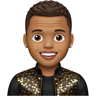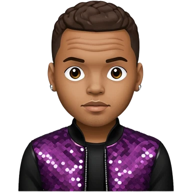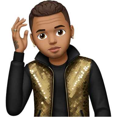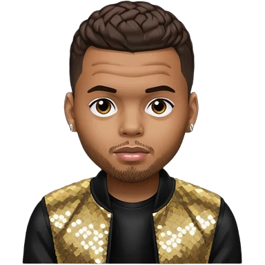 Chris Brown with dark brown hair, black sequin outfit emoji