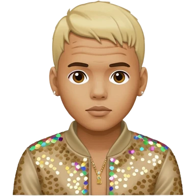 Chris Brown with blonde hair, beige sequin outfit emoji