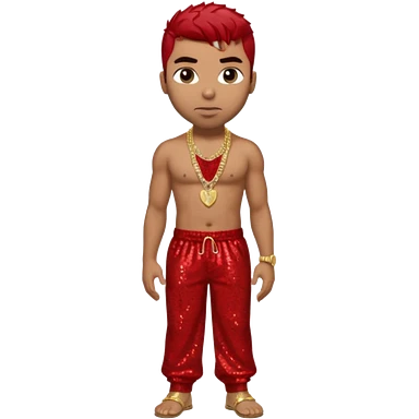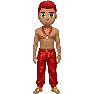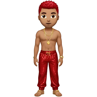 Ginuwine with red sequin baggy pants, shirtless with necklace, dark brown hair emoji