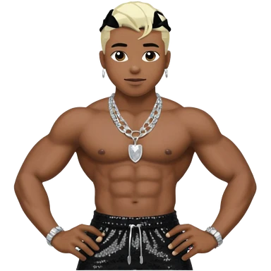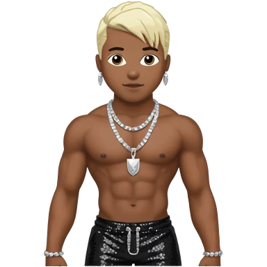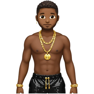 Chris Brown with black sequin baggy pants, shirtless with necklace emoji | AI Emoji Generator