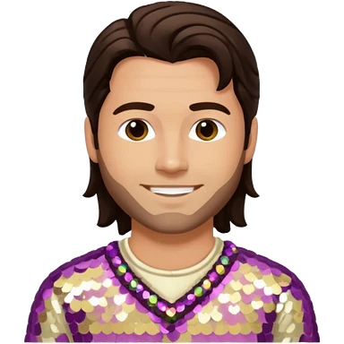 Chris Pontius from Jackass with long dark brown hair, cream sequin outfit emoji