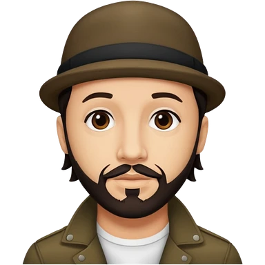 AJ McLean brown eyes, black hair, white shirt and fedora hat emoji