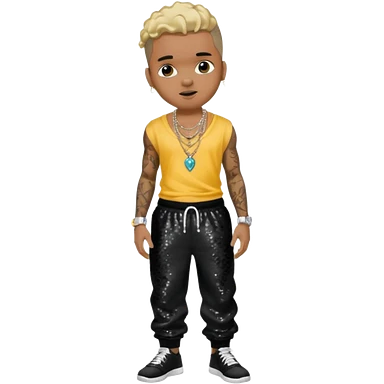 Chris Brown with blonde hair, black sequin baggy pants, shirtless with necklace emoji