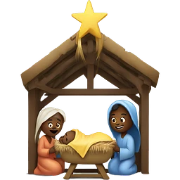 Christmas nativity scene NO humans with a star of Bethlehem and 1 mother cat and 5 kittens in a basket emoji