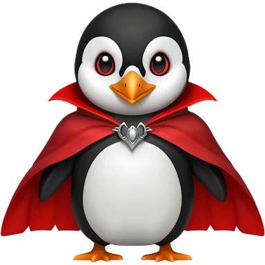 Vampire animal, penguin in red collar cloak, red eye, fangs emoji