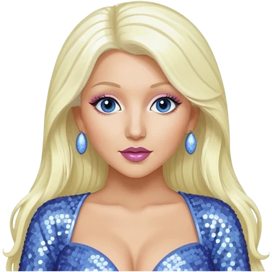 Christina Aguilera with long platinum blonde hair, periwinkle sequin outfit emoji | AI Emoji Generator