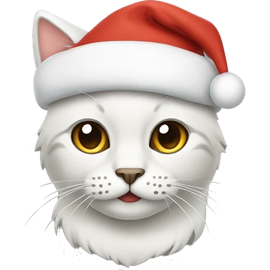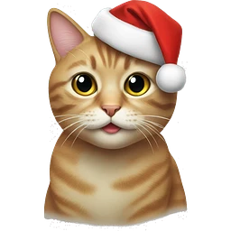 a ginger cat with cute eyes and very big ears with a christmas hat emoji