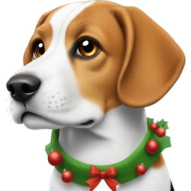 Beagle wearing a red Christmas sweater with a green tree in the front emoji