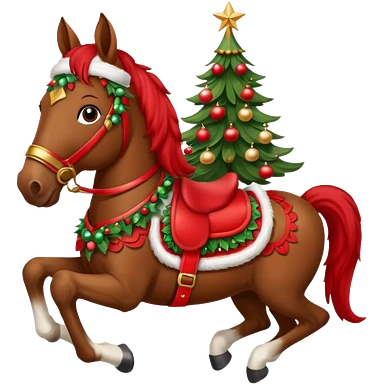 christmas brown horse with a red saddle emoji | AI Emoji Generator