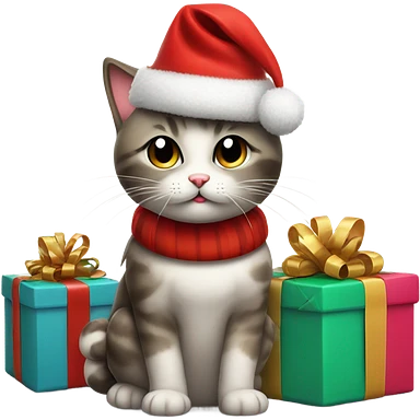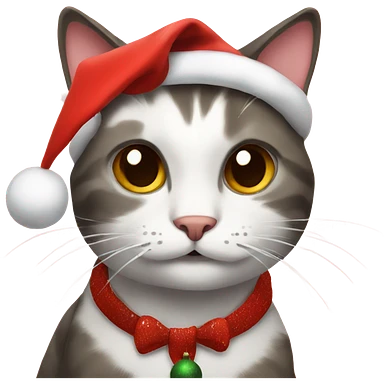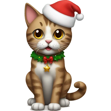 Christmas Cat with Christmas tree and Christmas hat emoji