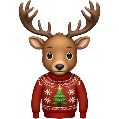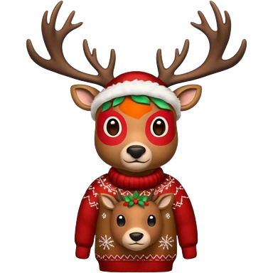 A vintage Christmas deer facing forward big wonder filled eyes and spots emoji