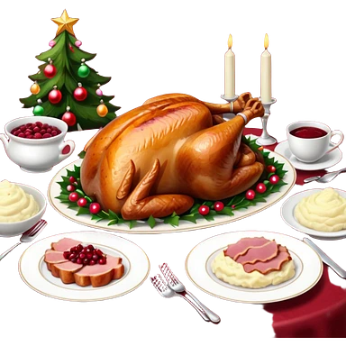 Family sitting on couch wearing Christmas hats. All with fat belly’s. Two people sleeping, one person burping. With Christmas dinner on floor. emoji