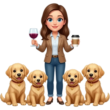 Christmas event planner in halter dress, coffee drinker, loves golden retriever puppies emoji | AI Emoji Generator