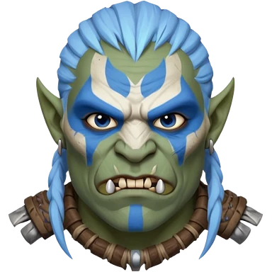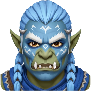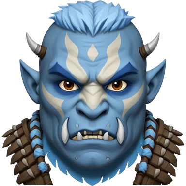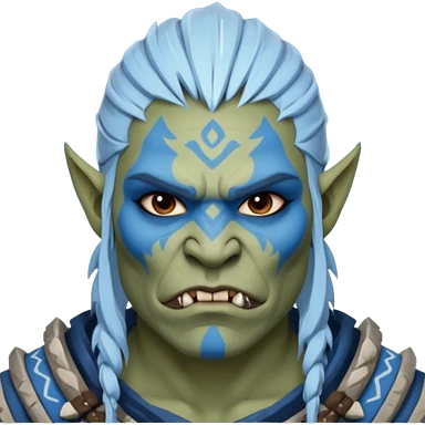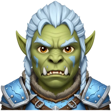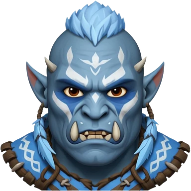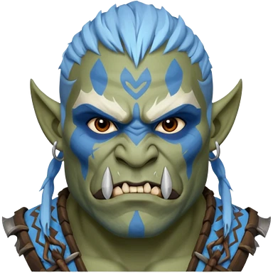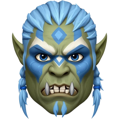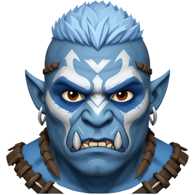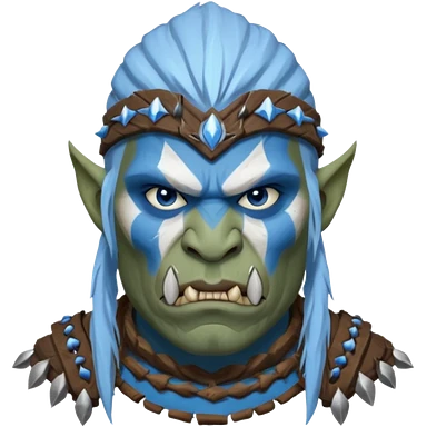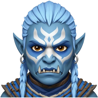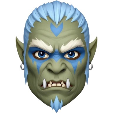 Fantasy orc portrait emoji, white and blue frost war paint on face, harsh winter warrior mood, strong expression, minimal tribal design, clean readable emoji style, male/female variant emoji