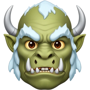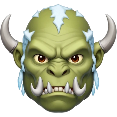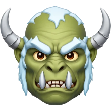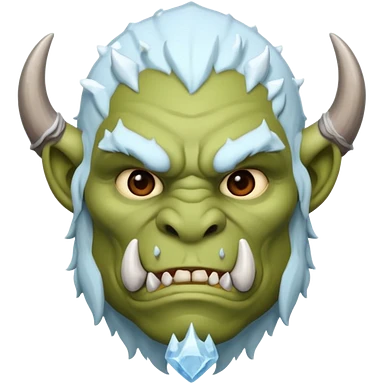 Fantasy orc portrait emoji, small bone charm with frost tied near neck or ear, tribal winter aesthetic, minimal readable design, flat emoji style, male/female variant emoji