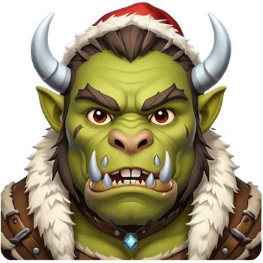 Christmas fantasy orc icon, winter feast chief theme, tribal ornaments, joyful brutal expression, festive winter atmosphere, stylized emoji portrait, male/female variant emoji | AI Emoji Generator